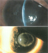 重度の結膜炎や表層性角膜炎にかかわらずコンタクトレンズの装用を続行した場合や、コンタクトケースの中の細菌やウイルス微生物の増殖が原因となり起こるまれな疾患です。